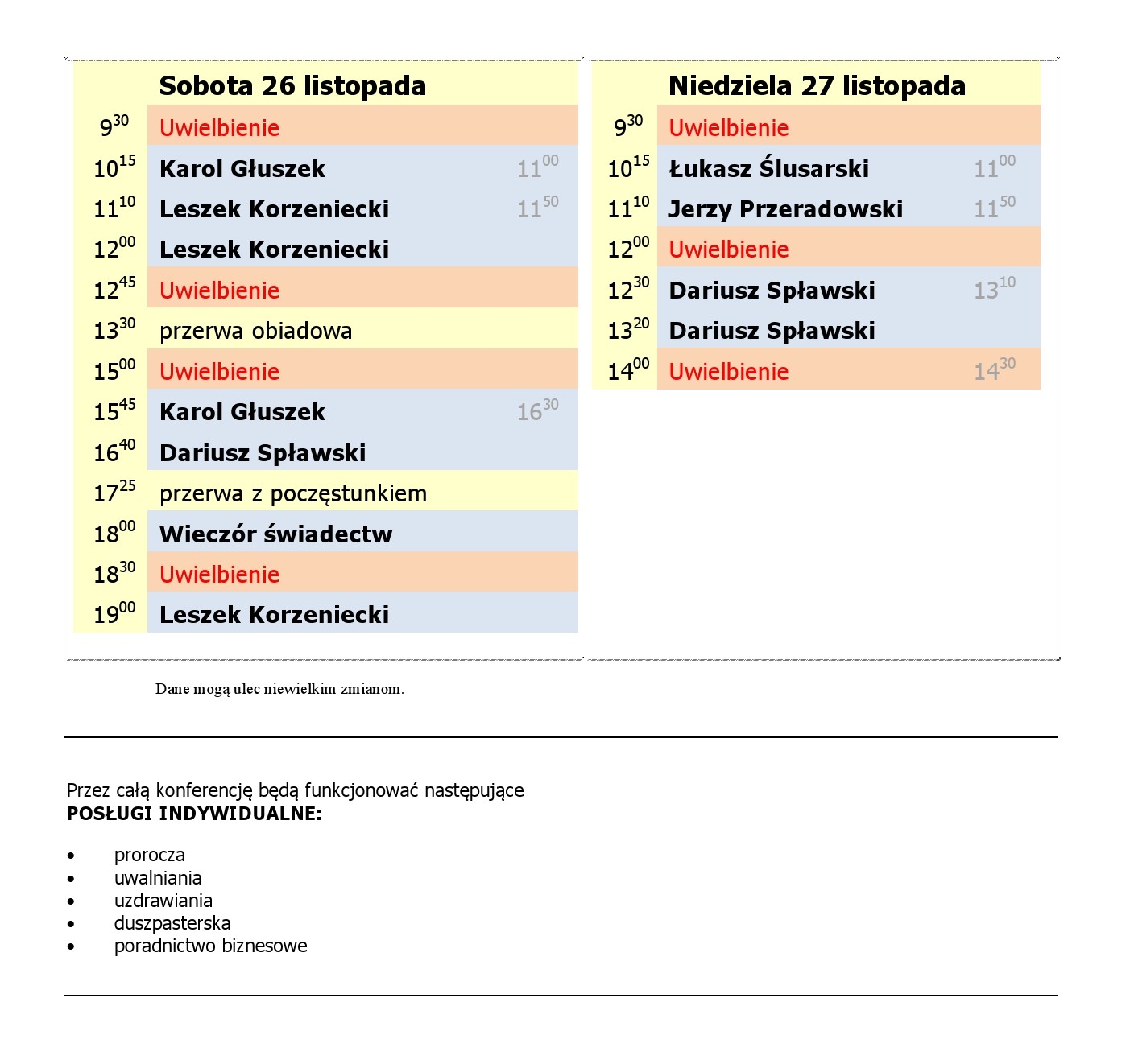 dostępne podczas całej konferencji